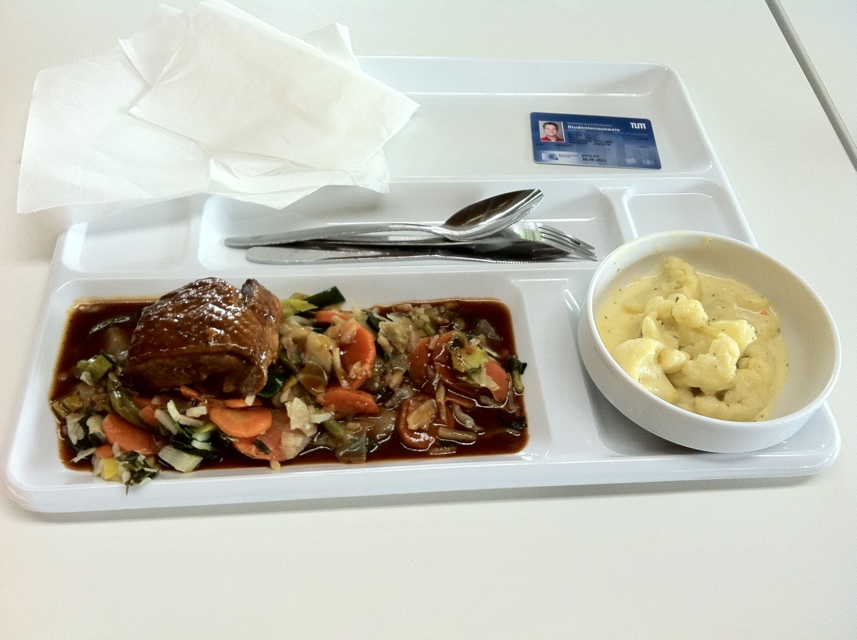 Apropó menza. Tegnap kiváltottam a diákigazolványom, csak azzal lehet a menzán fizetni. Meg a fénymásolóban meg a könyvtár is azzal megy meg még sok minden:). Simán elö sem kell venni csak odatartani az ember buxáját és már le is olvasták. Ma ki is próbáltam, megebédeltem. 3€-ér kaptam sült kacsamellet egy csomó zöldséggel. Ez még otthoni viszonylatokban is egészen türhetö szerintem, arról nem is beszélve hogy tényleg finom volt.